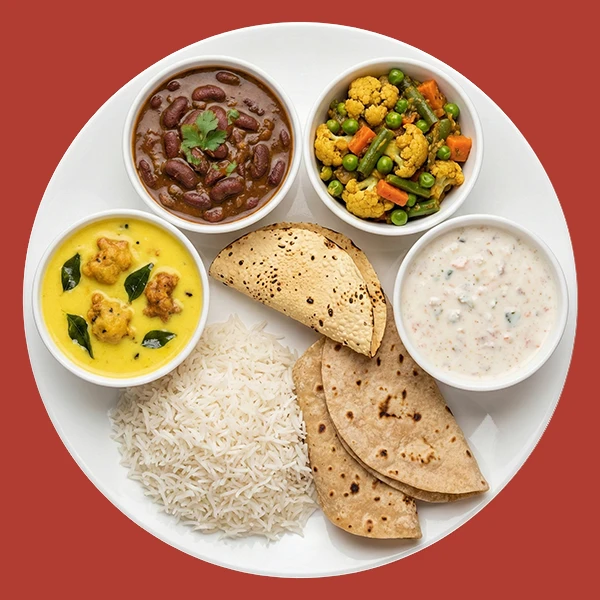 Enjoy complete home-style meals with dal, sabzi, rice, and roti, balanced portions cooked daily for comfort, taste, and everyday nourishment at home.